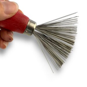 Acier Inoxydable : Les fils de ce pinceau sont en acier inoxydable, ce qui garantit une durabilité exceptionnelle et une résistance à la corrosion. L’acier inoxydable est un matériau robuste qui convient parfaitement aux tâches de nettoyage des casseroles.